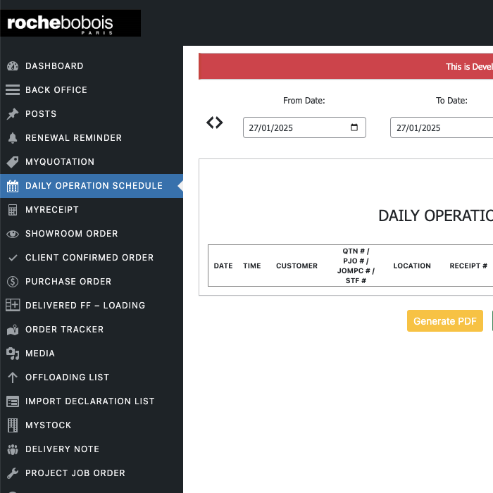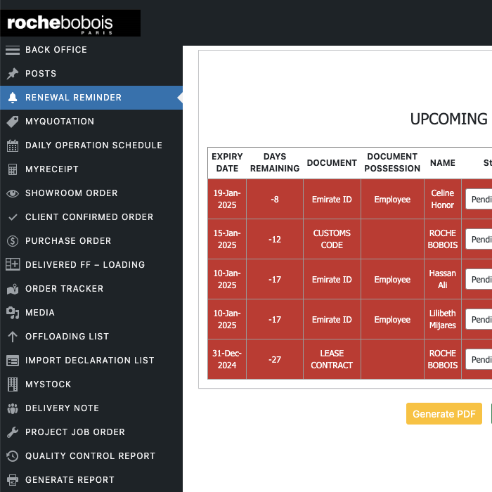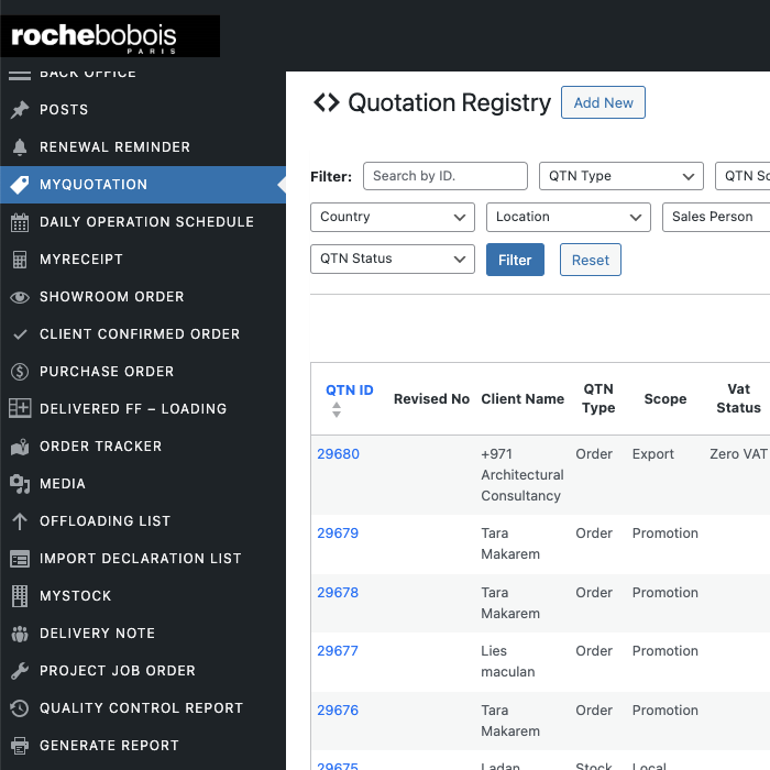 The ERP Management Software streamlines Roche Bobois’ operations by integrating key business functions into one platform. It offers tools for master registry setup, product and inventory management, and contact tracking. Features include automated reminders, daily scheduling, quotation and financial management, contract and project tracking, and detailed sales reporting. The HR module handles employee details, attendance, payroll, and performance. With role-based permissions and customizable user access, the software ensures secure and efficient management while enhancing productivity and decision-making across departments.